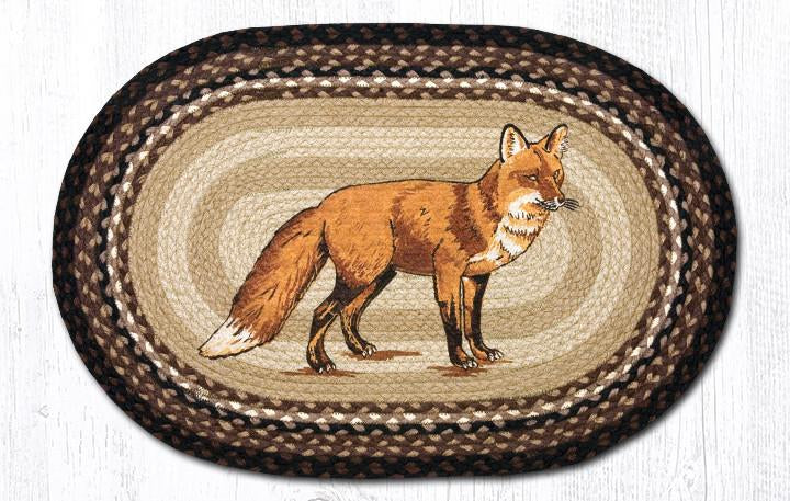 Tappeto Ovale Intrecciato in Juta Naturale con Motivo Volpe 50×75 cm